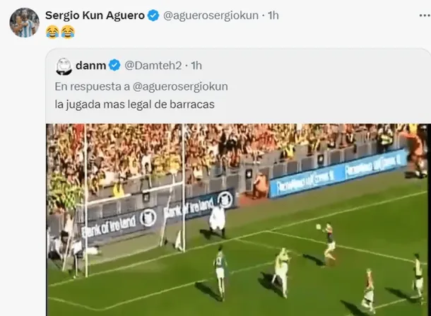Agüero comentó además un video en el que mostraba a jugadores de Barracas pasándose la pelota con las manos y luego pateando al arco.