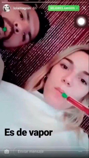 Se trata de un Storie que subió a Instagram la propia Magnin, en la que se los ve a ambos fumando "shisha" y exhalando el humo entre risas.
