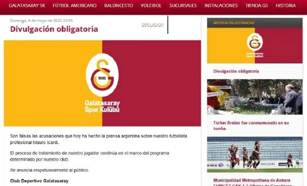 Hace unos días comenzaron a circular rumores que indicaban que el club turco iba a desvincular al delantero a pesar del contrato vigente. Ante esta situación, la institución sacó un breve y claro comunicado sobre el futuro de Icardi: "Son falsas las acusaciones que hoy ha hecho la prensa argentina sobre nuestro futbolista profesional", manifestaron.