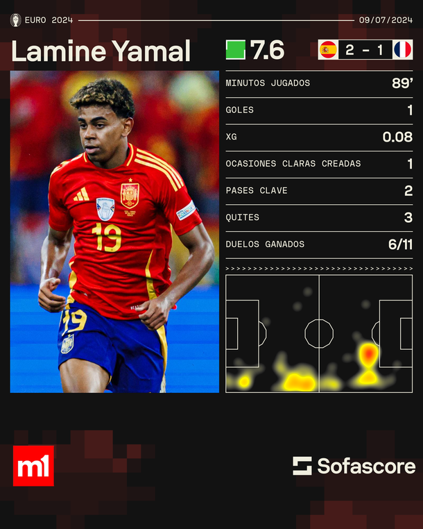 El tremendo récord que rompió Lamine Yamal con su gol en la victoria de España ante Francia