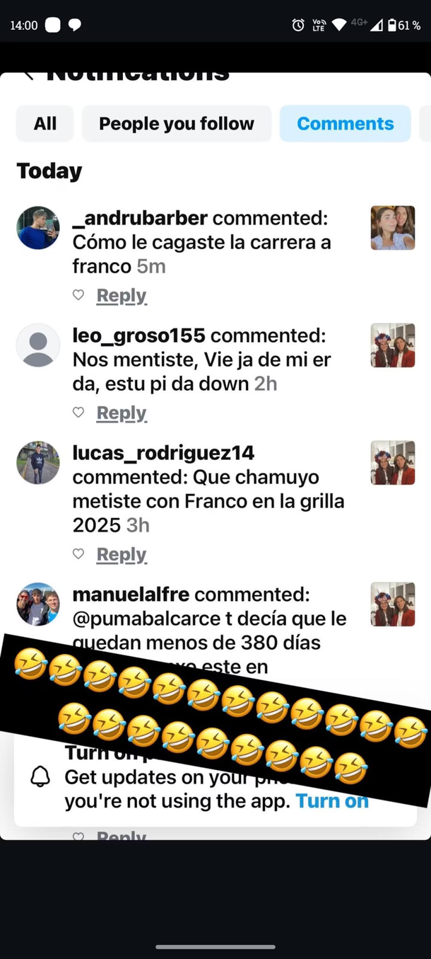 Días atrás, María Catarineu, pareja de Campbell-Walter y también representante de Colapinto, había compartido en Instagram una serie de comentarios ofensivos dirigidos hacia ellos por la falta de continuidad del argentino en la F1. Aunque intentó tomarlos con humor, publicándolos junto a emojis de risas, la situación dejó en evidencia el nivel de presión y críticas que enfrenta el entorno del piloto.