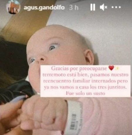 Mientras cambiaban a la hija del delantero, hizo un movimiento inesperado y se cayó. Agustina Gandolfo, la mamá, escribió en las redes sociales: “Gracias por preocuparse. Terremoto está bien”.