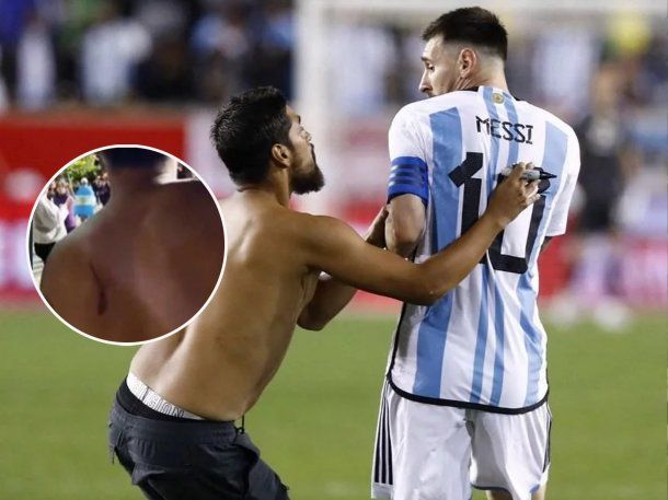 Así quedó la espalda del fanático de Lionel Messi que se metió a la cancha para que se la firme