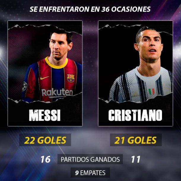 En estos partidos, el emblema del Barcelona convirtió en total 22 goles, mientras que el ahora jugador de la Juventus hizo 21 tantos. Además, en asistencias la ventaja es clara para el argentino: 12 a 1.