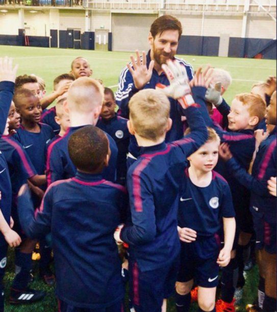 El Kun aprovechó que se encuentra con su amigo y compañero en la selección argentina en Macnchester, donde este viernes jugarán un amistoso frente a Italia de cara al Mundial de Rusia 2018, para tener este enorme detalle con los más chicos del City.