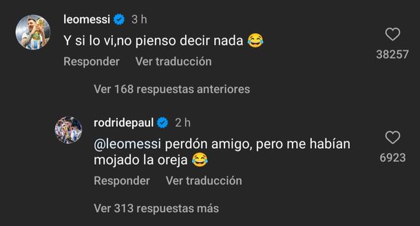 El partido lo ganó Rodrigo De Paul y este viernes Nicolás Occhiato deberá pagar la apuesta de cantar en el programa. El bonus track de esta historia lo dio Lionel Messi, compañero del futbolista en el truco, que comentó el video Luzu TV. “Y si lo vi, no pienso decir nada ”, señaló con un emoji de carcajadas.