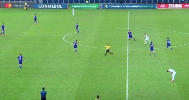 En la misma se puede ver a un solitario Messi encabezando un ataque en tiempo de descuento, completamente rodeado de camisetas paraguayas y sin ningún tipo de apoyo de sus compañeros.