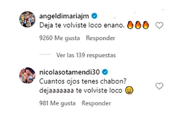 “Deja te volviste loco enano“, escribió Fideo, junto a tres emojis de fuego; mientras que el defensor le manifestó: “Cuantos ojos tenes chabon? dejaaaaaaa te volviste loco”.