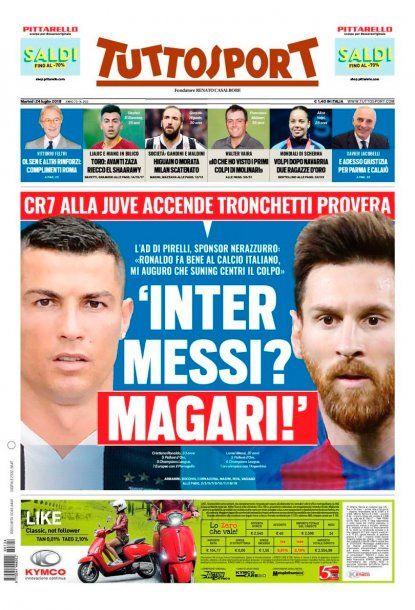 Tuttosport habla del sueño del club de Icardi de sumar a sus filas a La Pulga, luego de que Cristiano Ronaldo se incorporara a la Juventus.