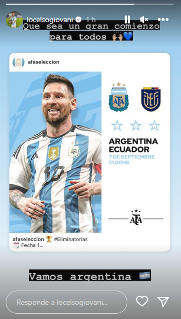 "Que sea un gran comienzo para todos. Vamos Argentina", escribió el rosarino en una historia en su cuenta oficial de Instagram.
