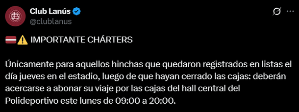 El club del sur bonaerense dispuso 60 micros y 15 vuelos charter para socios e hinchas, que se agotaron en tiempo récord. La demanda fue tan alta que las autoridades de Lanús ya trabajan para sumar más colectivos y aviones, intentando responder al entusiasmo de una hinchada que sueña con repetir la gloria continental conseguida en 2013.