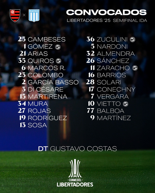 La expectativa es altísima para Avellaneda y el fútbol argentino en general, con la visita de este miércoles de Racing a Flamengo por la ida de las semifinales de la Copa Libertadores 2025, por lo que el entrenador Gustavo Costas definió el equipo con algunas sorpresas.