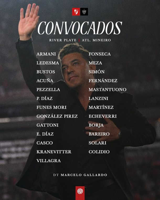 Tras el golpazo en su visita a Belo Horizonte, River recibe a Atlético Mineiro por la revancha de las semifinales de la Copa Libertadores, en busca de una épica remontada para sacar pasaje a la final, por lo que el entrenador Marcelo Gallardo definió a último momento el equipo.