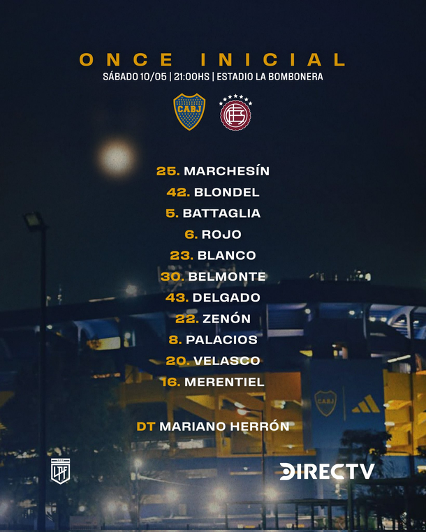 Boca recibe este sábado por la noche a Lanús, en el primer partido de los playoffs, en el marco de los octavos de final del Torneo Apertura 2025 de la Liga Profesional de Fútbol, por lo que el DT interino Mariano Herrón confirmó el equipo.