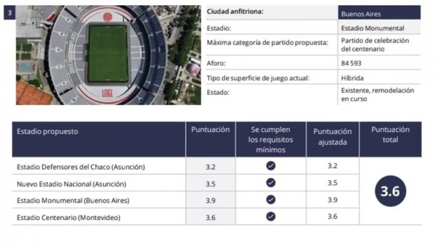 Pese a estas modificaciones, la FIFA quedó impresionada con la infraestructura del Monumental. En su informe, destacó las recientes mejoras en el campo de juego, que ahora cuenta con una superficie de césped híbrido y un avanzado sistema de aspirado y ventilación. “Las instalaciones técnicas pueden considerarse de última generación y cumplen con la mayoría de los requisitos”, afirmó la Federación.