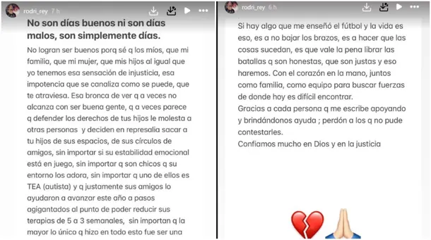 “Tenemos esa sensación de injusticia”, expresó el arquero dejando entrever la frustración que siente junto a su esposa e hijos respecto a la falta de sensibilidad que percibe por parte del Instituto José Manuel Estrada de City Bell. En su descargo, el arquero destacó que el apoyo de los compañeros de colegio de su hijo fue clave para su desarrollo durante el año, permitiéndole incluso reducir el número de terapias semanales.