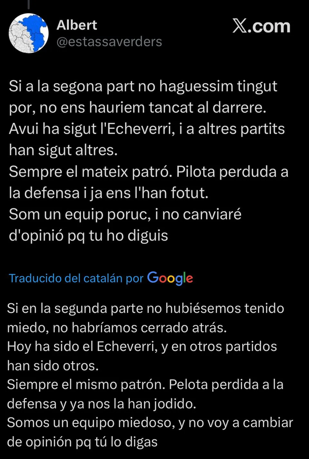 Con el empate consumado, la reacción de los hinchas de Girona en redes sociales fue inmediata. Si bien hubo cuestionamientos al rendimiento colectivo, el argentino también quedó apuntado. “No sabe ni dónde juega”, escribió un usuario, mientras que otro fue más tajante: “Espero que lo sienten en el banquillo”.