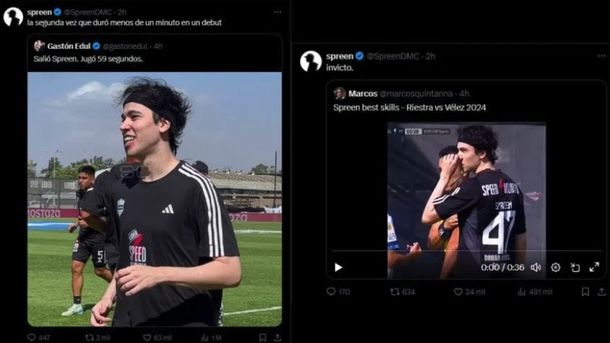 Spreen contestó un mensaje del periodista Gastón Edul en el que se remarcaba el tiempo neto de su participación en el partido para hacer el primer chiste: "La segunda vez que duro menos de un minuto en un debut".