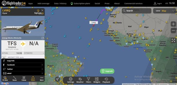 Se puede seguir el minuto a minuto del avión LV-IRQ a través del siguiente link https://www.flightradar24.com/LVIRQ/2c6aae05