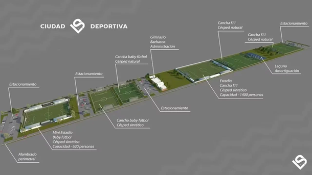 El complejo tendrá un terreno de 80 mil metros cuadrados, en el que incluirán tres campos de juego de fútbol infantil y juvenil, tres canchas de nivel profesional y un mini-estadio con capacidad para 1.500 espectadores. Además, construirá vestuarios, gimnasio, área común, locales de alimentación, cuatro estacionamientos y un edificio que se encargará de las tareas administrativas de la Ciudad Deportiva LS (por Luis Suárez).