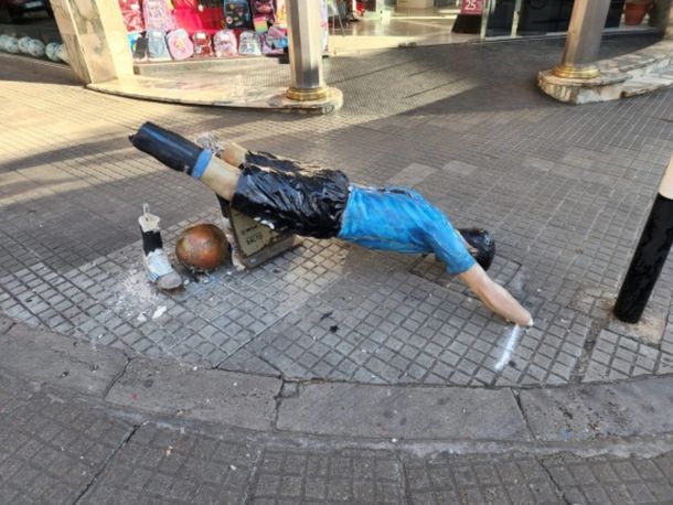 Una estatua en homenaje a Luis Suárez, el goleador de Nacional y el seleccionado de Uruguay, fue destruida esta madrugada en la ciudad de Salto donde nació el futbolista por hinchas de Peñarol que festejaban un nuevo aniversario del club.