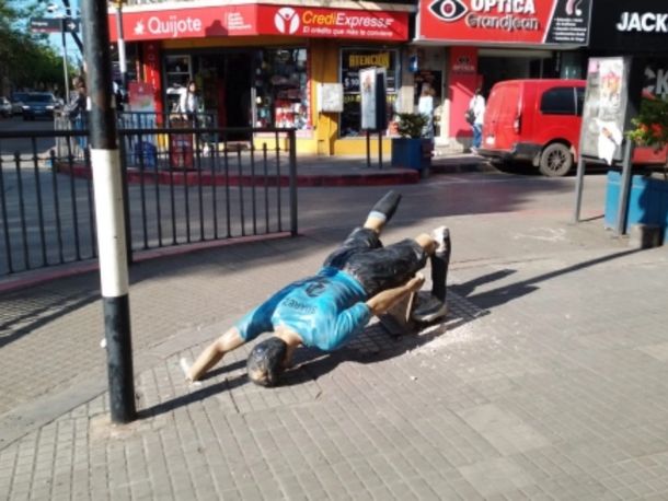 Según informaron varios medios de prensa uruguayos, la estatua de Suárez vestido con la indumentaria del seleccionado uruguayo en el centro de la ciudad de Salto, fue arrancada y destruida por hinchas de Peñarol que se congregaron para festejar el aniversario 131 de la entidad.