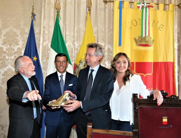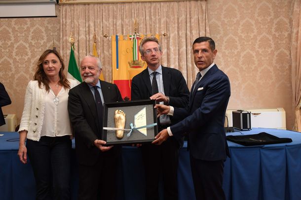 "Hoy tuvimos el privilegio de entregarle al presidente Aurelio De Laurentiis, en la alcaldía de Nápoles, la primera impronta de esta edición limitada de 500 piezas, que muy pronto estará disponible en nuestro store oficial. Esperamos que todos ustedes compartan nuestra emoción", agregó el empresario italiano.
