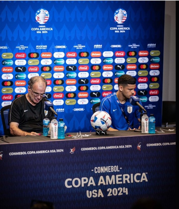 El divertido momento entre Marcelo Bielsa y Maxi Araújo en la conferencia de Uruguay: "Es un jugador vulgar"