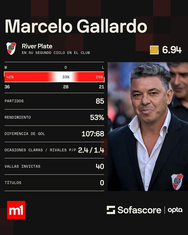 En 2026, el equipo logró una victoria en los 32avos de final de la Copa Argentina ante Ciudad de Bolívar y dejó en curso el Apertura 2026 con un registro parcial de 2 triunfos, un empate y 3 caídas. En total, el segundo ciclo de Gallardo en River se cierra con 85 partidos dirigidos, 35 victorias, 32 empates y 18 derrotas. Números que contrastan con la etapa más gloriosa del entrenador en el club, pero que forman parte de una historia que tendrá su último capítulo este jueves en el Monumental ante Banfield.