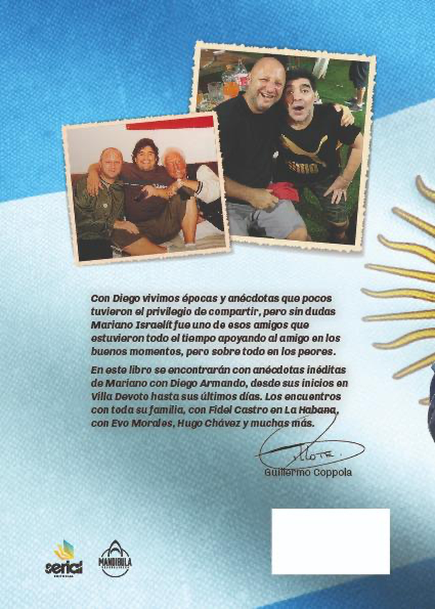 El libro tiene el prólogo de Guillermo Coppola, otro de los amigos del ídolo argentino. "Mariano Israelít fue uno de esos amigos que estuvieron todo el tiempo apoyando al amigo en los buenos momentos, pero sobre todo en los peores", lo destaca el exmanager al autor.