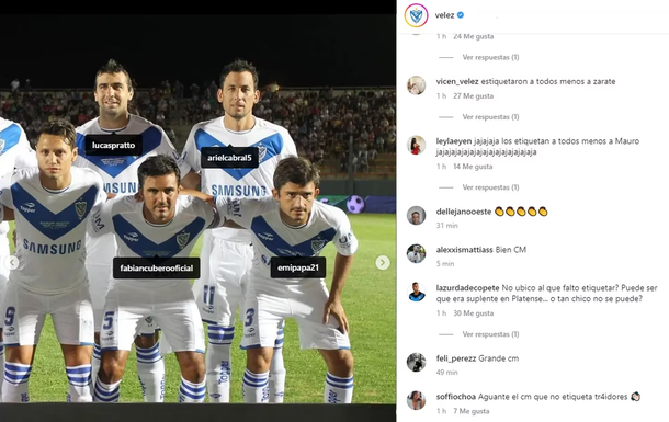 El delantero no fue mencionado, lo que fue inmediatamente percibido por los fanáticos, y por eso explotaron los comentarios. “A los traidores ni una etiqueta”, “No ubico al que faltó etiquetar, ¿puede ser que era suplente en Platense?”, “Qué lindo este CM, nada de traidores en Vélez”, fueron algunas de las opiniones.