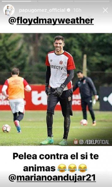 En las historias de su cuenta de Instagram (las fotos que se borran tras 24 horas), el volante ofensivo publicó una foto de Mariano Andújar, actual arquero de Estudiantes de La Plata, junto a la que escribió: "Peleá contra él si te animás", mencionando a la cuenta del boxeador.