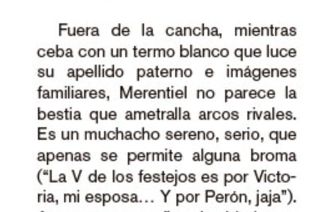 En este marco es que se viralizó un fragmento de una entrevista en la revista oficial Desde La Boca donde Merentiel explicó: "La V de los festejos es por Victoria, mi esposa.. Y por Perón, jaja".
