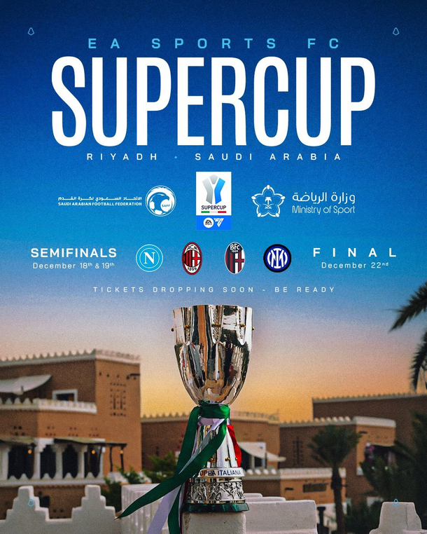 El conjunto rossonero, actual campeón del torneo, llega a esta instancia con la intención de defender el título y confirmar su vigencia en este tipo de definiciones. El equipo dirigido por Massimiliano Allegri desembarcó en Medio Oriente luego de empatar 2-2 como local frente a Sassuolo por la Serie A, resultado que lo mantiene en los primeros puestos del campeonato, en una tabla muy ajustada que tiene a Inter como líder y a Napoli como uno de los perseguidores inmediatos.