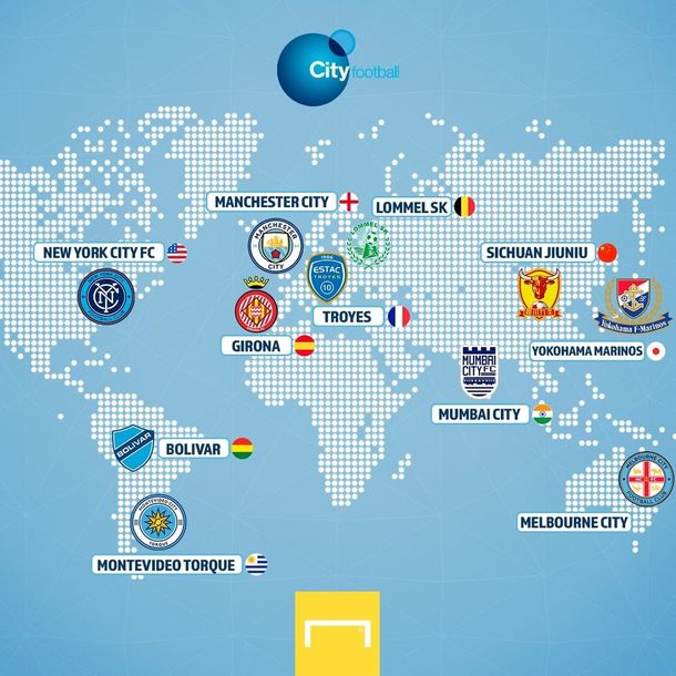 Además del Machester City, el holding, compuesto por Abu Dhabi United Group (75,1%), China Media Capital (12,4%), CITIC Group (12,4%), Silver Lake (10,4%) y Vega FZ (2,1%), tienen: al New York City FC, en Estados Unidos; ED Bahía, en Brasil; el Bolivar, en Bolivia; el Montevideo Torque, en Uruguay; Troyes, de Francia; Basaksehir, en Turquía; el Palermo de Italia; Lommel SK de Bélgica; Melbourne City FC de Australia; Yokohama Marinos de Japón; Sichuan FC de China y Mumbai City FC en India.