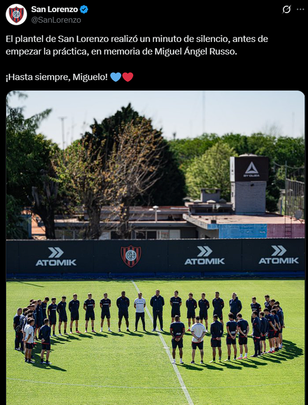 San Lorenzo, por su parte, se sumó a la iniciativa, con la bandera a media asta en la Ciudad Deportiva y un minuto de silencio que involucró a todo el primer equipo.