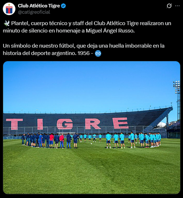 Tigre, club donde también juega su hijo Ignacio, rindió homenaje a Russo con la misma medida y expresó en redes sociales: “Un símbolo de nuestro fútbol, que deja una huella imborrable en la historia del deporte argentino”.