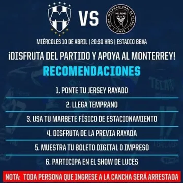 Luego de la polémica que se generó post encuentro de ida, en la que el cuerpo técnico de Rayados lanzó fuertes acusaciones contra el campeón del mundo en Qatar 2022 y el entrenador de las Garzas, Gerardo “Tata” Martino, el club impuso condiciones a sus hinchas que subieron aún más la temperatura.