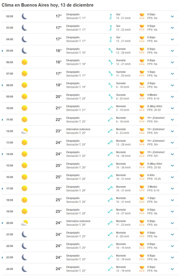 Entre las 16 y las 19 horas, Meteored estima cielo despejado y temperatura de 25 grados con vientos leves del noreste.
