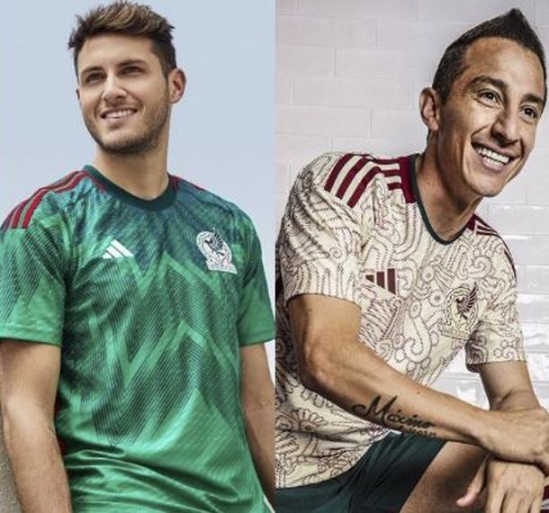 La Seleccíon de México también sorprendió al presentar sus diseños. Tanto la primera, como la segunda, pretenden homenajear las raíces indígenas del país. Su primera camiseta es de color verde e incluye siluetas inspiradas en el dios Quetzacóatl y la segunda es de un tono beige con dibujos y detalles en granate.