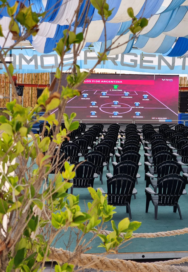 El lugar no tiene nada que envidiarle al Fan Fest de Qatar, porque tiene una pantalla gigante de alta definición de 8 x 3 metros, con sonido surround.
