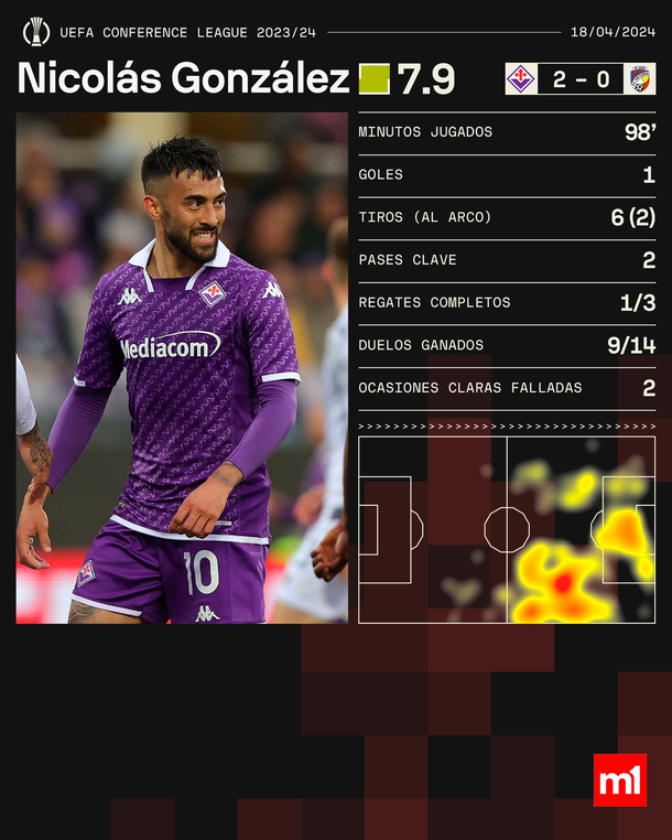 LOS NÚMEROS DE NICO GONZÁLEZ EN EL TRIUNFO DE FIORENTINA