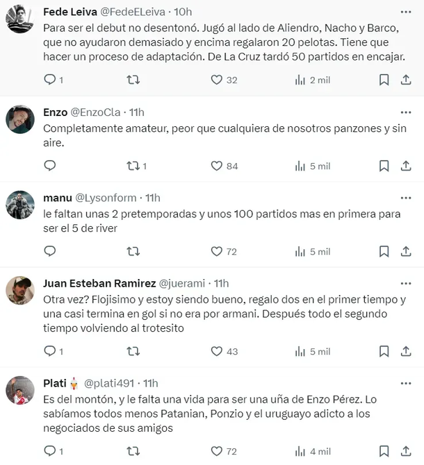 El volante uruguayo tuvo su estreno en el Millonario y si bien fue criticado en las redes, el entrenador lo respaldó en conferencia de prensa.
