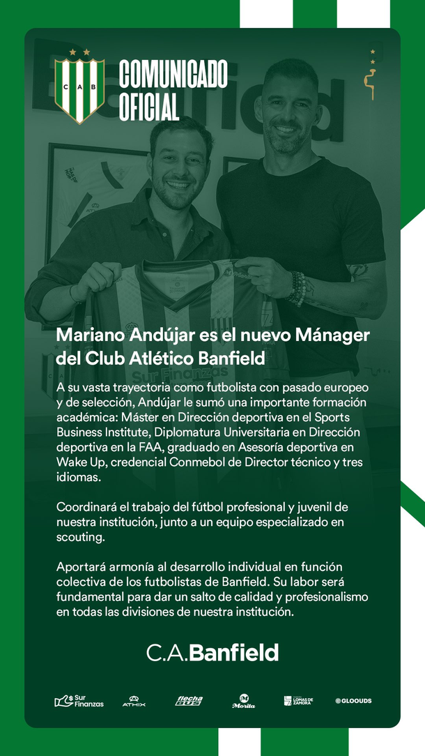 El exarquero Mariano Andújar, que tuvo una tremenda trayectoria y en el camino ganó mucha experiencia a nivel clubes, se convirtió en el nuevo manager deportivo de Banfield –quien busca una transformación deportiva con su nuevo presidente-, según lo anunció el club a través de sus redes sociales.