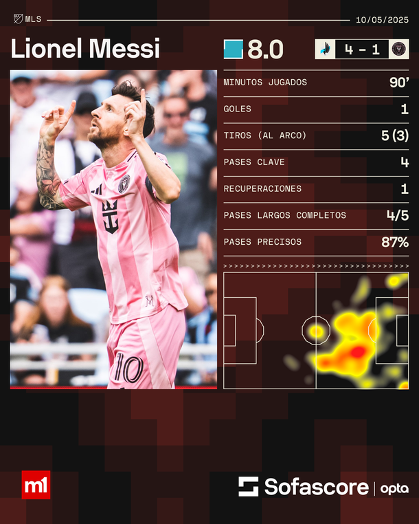 Tras su eliminación en semifinales de la Concachampions, Inter Miami goleó 4-1 a New York Red Bull, comenzando a dejar atrás la derrota. A tres puntos de la cima de la Conferencia Este y con un partido menos, una victoria podía impulsar sus chances en la fase regular y para los playoffs.
