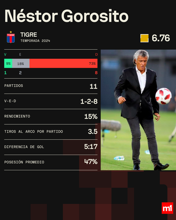 Los fatales números de Pipo Gorosito: 1 victoria en los últimos 11 partidos