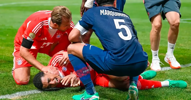 La jugada se dio cuando el joven mediocampista alemán fue a buscar un pase profundo de Michael Olise, mientras el defensor Willian Pacho intentaba cerrar. Donnarumma salió con todo para cortar la acción y terminó cayendo sobre la pierna izquierda de Musiala, que se dobló de manera impactante. La escena provocó un silencio absoluto en el estadio y la reacción inmediata de los futbolistas, entre ellos Harry Kane, que pidió la atención médica de urgencia.
