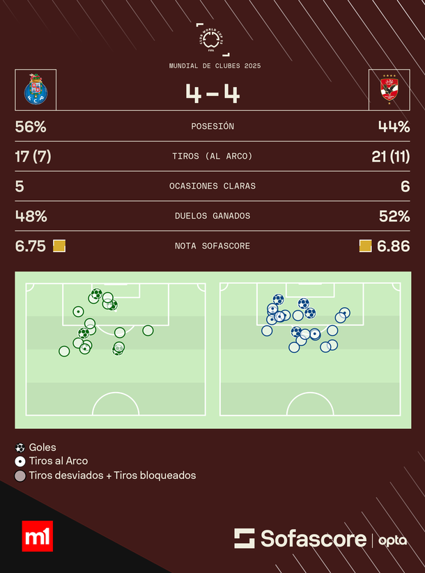 Porto y Al Ahly se despidieron del Mundial de Clubes 2025 con un empate 4-4 en un partidazo