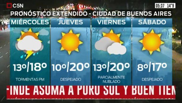 En tanto, el jueves está pronosticado cielo despejado, vientos del sector este rotando al noreste, y una temperatura que estará en una mínima de 10 grados y una máxima de 20.