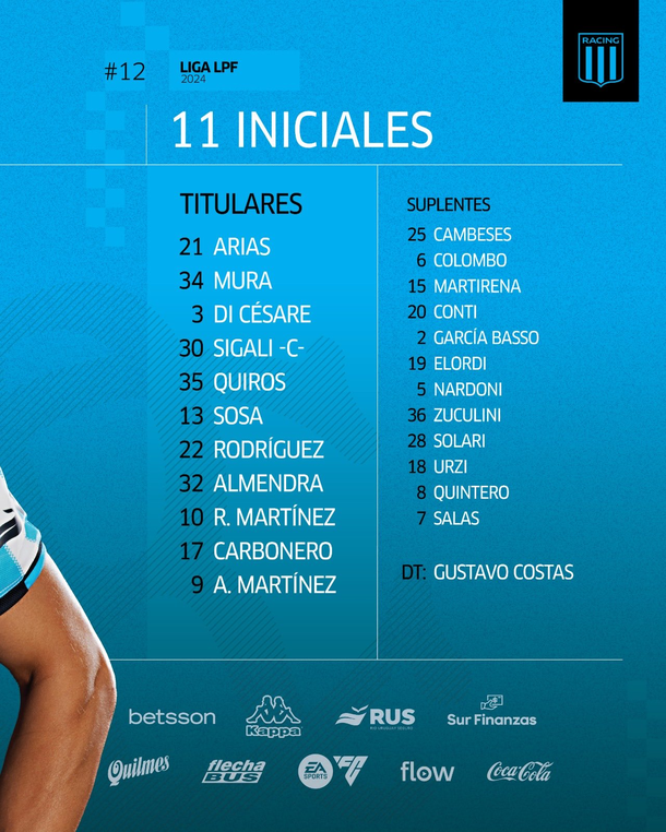 Los 11 de Racing para enfrentar a Independiente